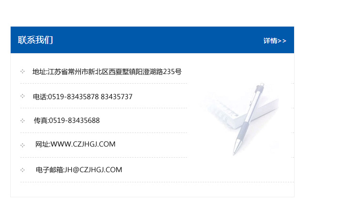 傳真:0519-83435688    郵編:213135    網(wǎng)址:WWW.czjhgj_com.cnsxlxw.com    電子郵箱:JH@czjhgj_com.cnsxlxw.com